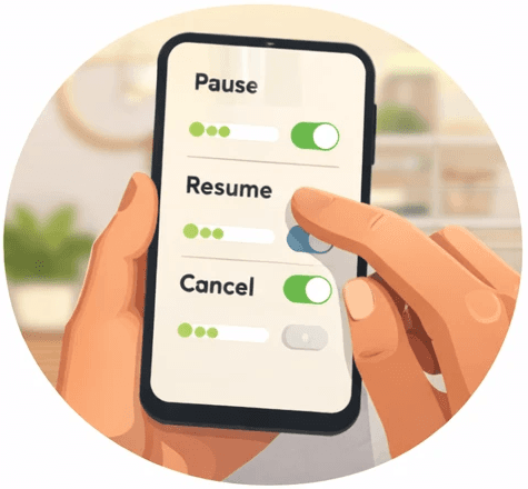 Love it? Continue your plan with one click. Need a break? Pause or cancel anytime.
